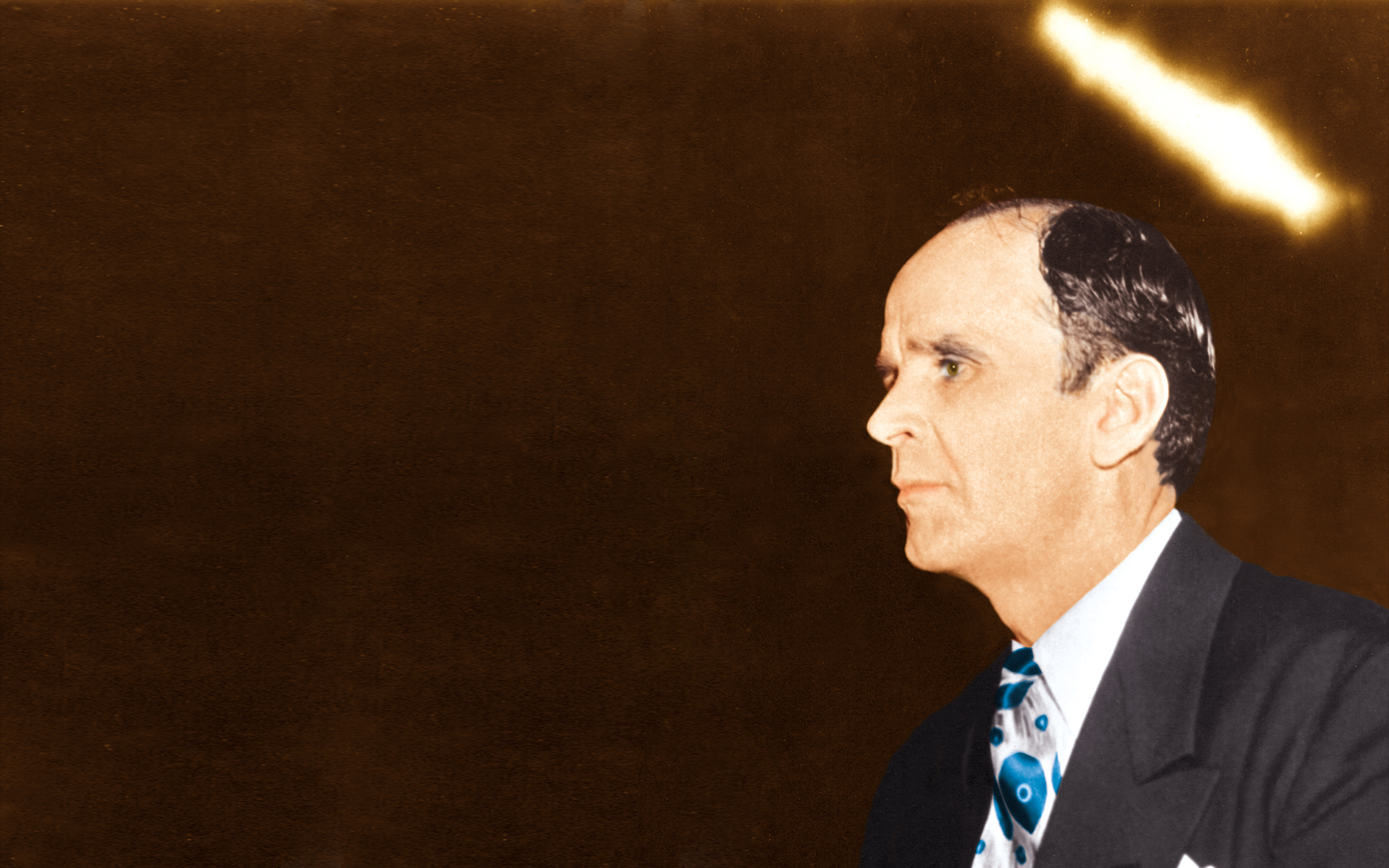 halo above William Branham's head.  No natural light source was on hand to produce the halo and photos taken of the opposing clergyman at the same time and on the same roll of film, were inexplicably blank.